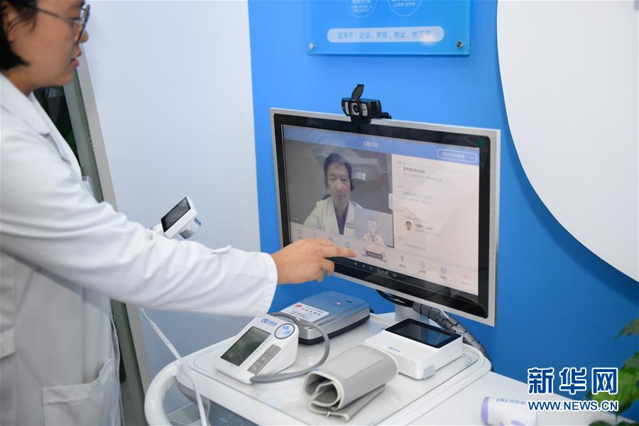 11月6日,參觀者在烏鎮(zhèn)互聯(lián)網(wǎng)醫(yī)院體驗(yàn)“智能醫(yī)務(wù)室”的體檢功能。據(jù)了解,“智能醫(yī)務(wù)室”由智能移動醫(yī)療一體機(jī)、智能藥柜以及一系列檢查設(shè)備組成,根據(jù)健康檔案和檢查結(jié)果,視頻連接家庭醫(yī)生就能解決常見的醫(yī)療健康問題。 新華社記者黃宗治攝