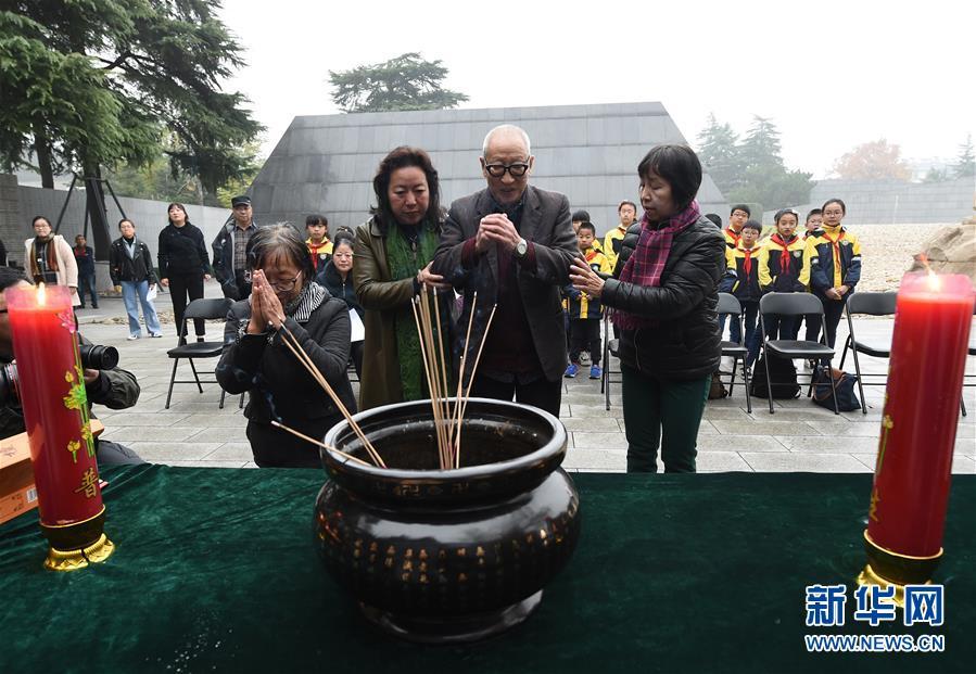12月3日,南京大屠殺幸存者石秀英焚香祭奠被侵華日軍殺害的親人。 當(dāng)日,在第五個(gè)南京大屠殺死難者國家公祭日到來之際,南京大屠殺死難者遺屬家祭活動在侵華日軍南京大屠殺遇難同胞紀(jì)念館正式啟動。首批前來開展家祭活動的南京大屠殺幸存者余昌祥、石秀英老人分別率家屬在紀(jì)念館內(nèi)的死難者名單墻前獻(xiàn)花、敬香、跪拜,并誦讀家信,表達(dá)對親人的哀思。 新華社記者 孫參 攝