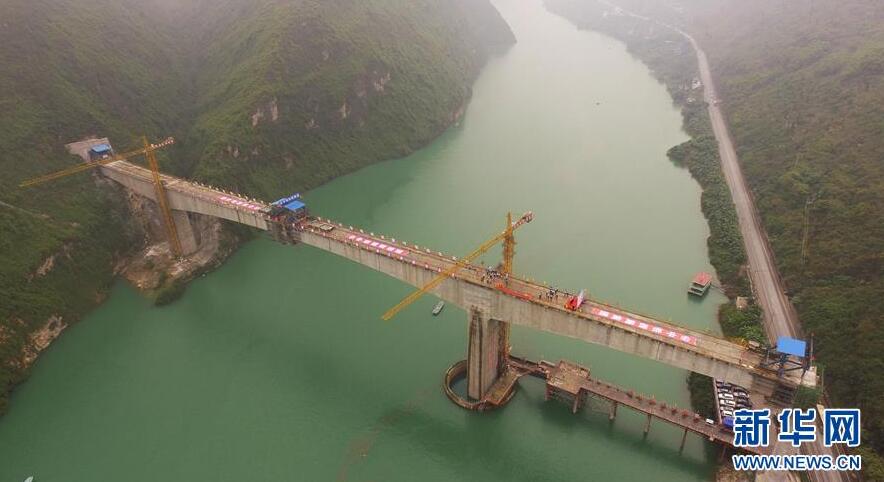 2018年5月30日,云南昭通,鸚哥大橋完成最后一段35米引橋現(xiàn)澆箱梁作業(yè),標(biāo)志著“鸚哥溜索改橋”主體工程完工,進(jìn)入最后階段的橋面鋪裝和防護(hù)欄施工,預(yù)計6月底建成通車。