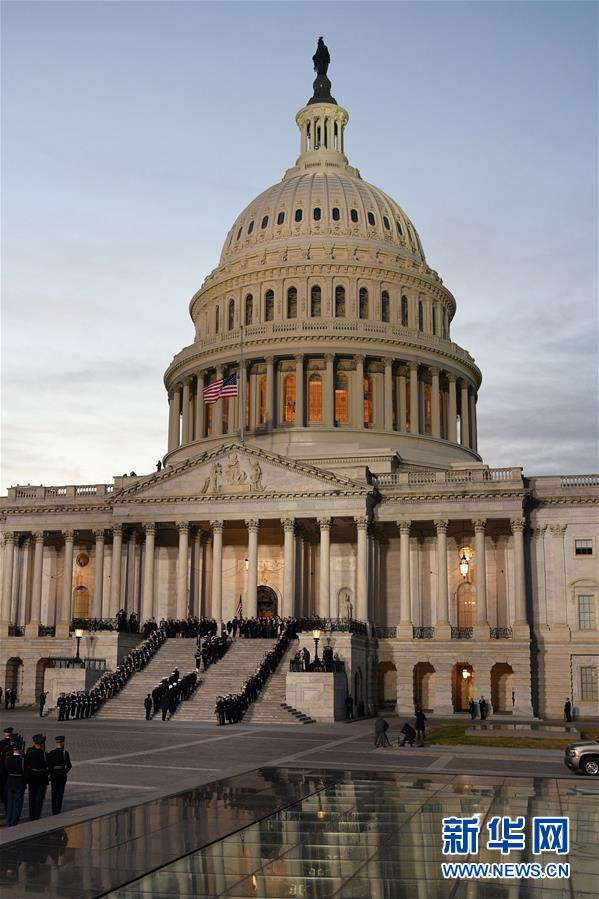 12月3日,在美國首都華盛頓,美國前總統(tǒng)喬治·赫伯特·沃克·布什(老布什)的靈柩抵達(dá)國會大廈。