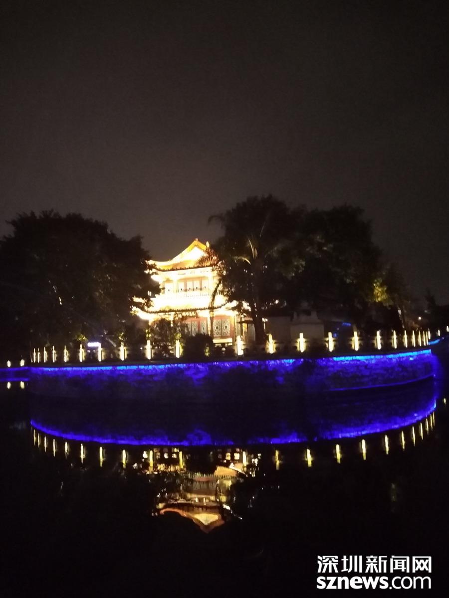 百里塘河穿市而過 ,燈光水光,相映成趣。 吳超攝