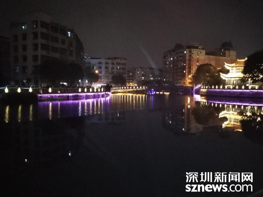 百里塘河穿市而過 ,燈光水光,相映成趣。 吳超攝
