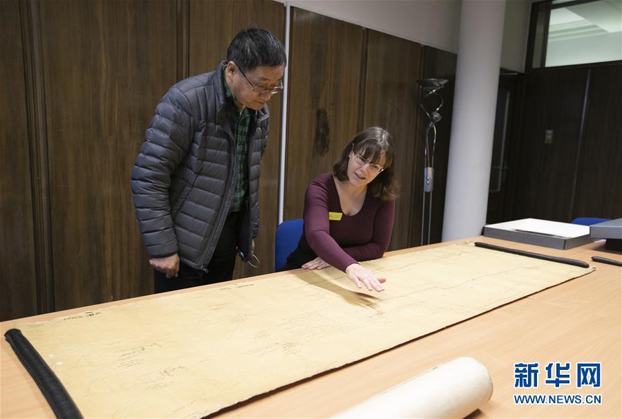 11月2日,在英國紐卡斯?fàn)柕奶┒鳌枡n案館,檔案管理員瑞秋·吉爾(右)向新華社記者介紹致遠(yuǎn)艦設(shè)計圖紙。 新華社記者日前在紐卡斯?fàn)柼┒鳌枡n案館查找北洋海軍史料時發(fā)現(xiàn)一套七張、檔案名為“中國巡洋艦舵機(jī)設(shè)計圖”的原始圖紙。塵封百年,甲午海戰(zhàn)中抗擊日艦后沉沒的清北洋海軍致遠(yuǎn)艦部分原廠設(shè)計圖紙在其建造地——英國紐卡斯?fàn)柺械囊患覚n案館首次被發(fā)現(xiàn),為打撈那段悲壯的歷史提供了重要參考。 新華社記者 韓巖 攝