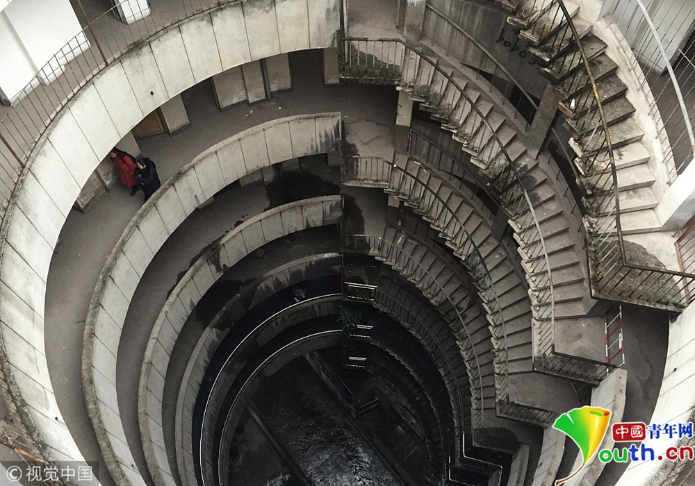 重慶洋人街景區(qū)內(nèi)的穿樓觀光索道吸引不少游客體驗。據(jù)悉,跨度長1000米的觀光索道將隨著洋人街的拆遷而搬離。中新社記者陳超 攝 2017年9月27日,重慶,南岸區(qū)某小區(qū)的“螺旋”停車場,從公路到車庫要下5層樓,司機需要轉(zhuǎn)無數(shù)個360度圈。圖片來源:視覺中國
