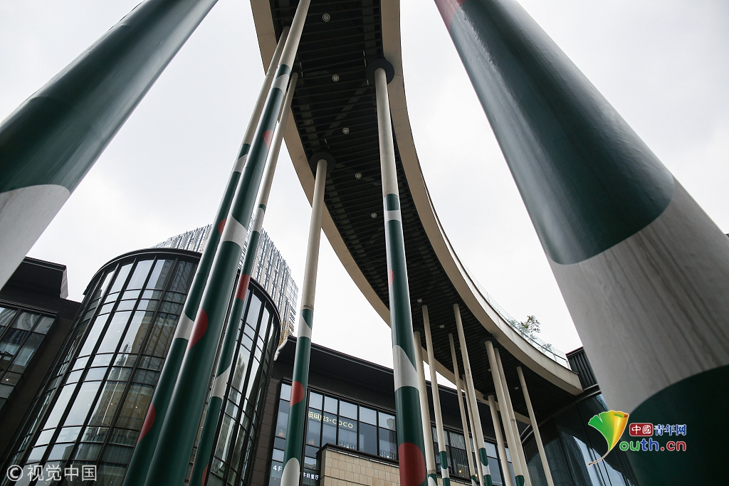 中國青年網(wǎng)2018年12月13日訊 2018年12月11日,重慶,重慶一座造型奇特的人行天橋吸引著人們的注意,柱子高約10米,沒有橋墩,呈半弧形,連接著兩棟獨(dú)立建筑,下方靠19根纖細(xì)的立柱支撐著。