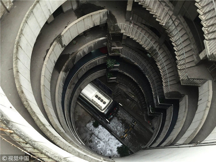 重慶洋人街景區(qū)內(nèi)的穿樓觀光索道吸引不少游客體驗(yàn)。據(jù)悉,跨度長(zhǎng)1000米的觀光索道將隨著洋人街的拆遷而搬離。中新社記者陳超 攝 2017年9月27日,重慶,南岸區(qū)某小區(qū)的“螺旋”停車場(chǎng),從公路到車庫(kù)要下5層樓,司機(jī)需要轉(zhuǎn)無(wú)數(shù)個(gè)360度圈。圖片來(lái)源:視覺(jué)中國(guó)