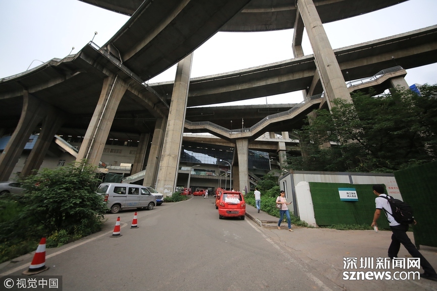 2018年5月29日,重慶,魔幻重慶又雙叒叕放大招!還有一個(gè)獨(dú)特的亮點(diǎn),重慶軌道交通3號(hào)線銅元局站,出口由一段長(zhǎng)梯銜接上方立交橋和下方的路面,與全國(guó)最高城市立交橋蘇家壩立交組成了獨(dú)特風(fēng)景,許多游客專門(mén)趕來(lái)拍照。