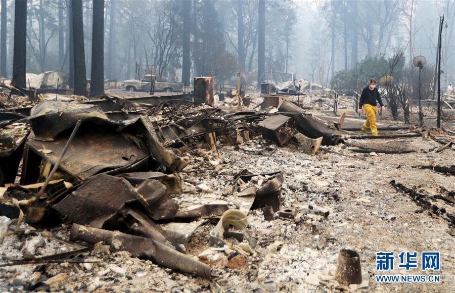 11月13日,在美國加利福尼亞州天堂鎮(zhèn),搜救人員在山火過后的廢墟工作。