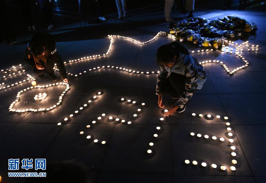 12月12日,學(xué)生將組成紀(jì)念圖案的白燭擺放整齊。 當(dāng)晚,南京東南大學(xué)學(xué)生在校園舉行“燭光祭”活動,悼念南京大屠殺遇難同胞。學(xué)生們點燃白燭,獻(xiàn)花默哀,表達(dá)哀思。 新華社記者 孫參 攝