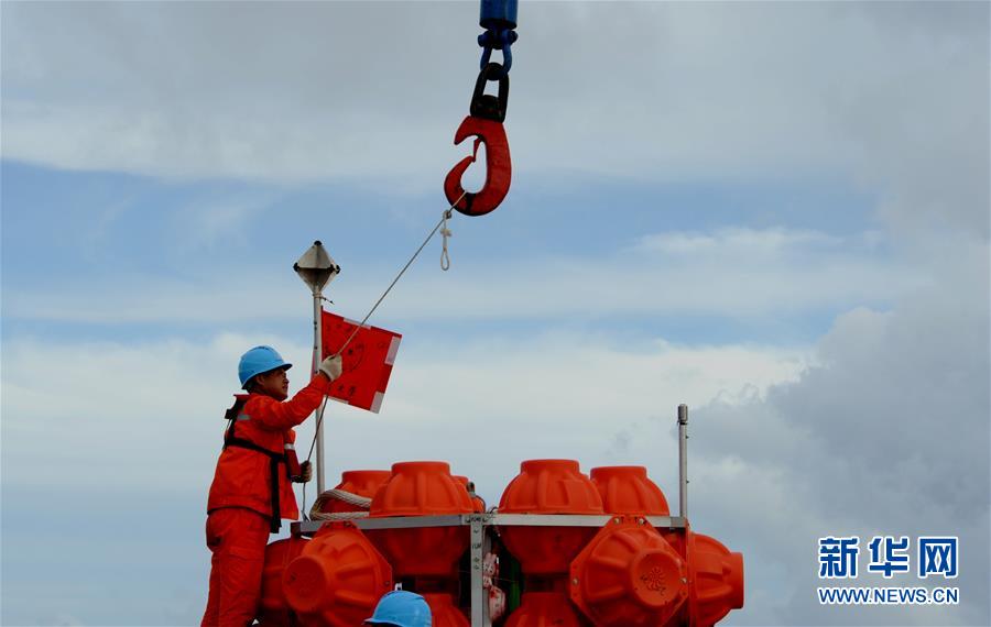 考察隊(duì)員在布放“彩虹魚(yú)”著陸器前進(jìn)行檢查工作(12月10日攝)。 由上海海洋大學(xué)和西湖大學(xué)聯(lián)合組成的“彩虹魚(yú)”科考團(tuán)隊(duì),12月11日在全球最深的海溝——馬里亞納海溝成功完成兩臺(tái)“彩虹魚(yú)”第二代著陸器的萬(wàn)米級(jí)海試,深度分別為10918米和10899米。 新華社記者 張建松 攝