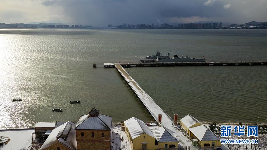 這是12月8日無人機拍攝的威海劉公島鐵碼頭。這里曾是北洋海軍的母港。 新華社記者郭緒雷攝