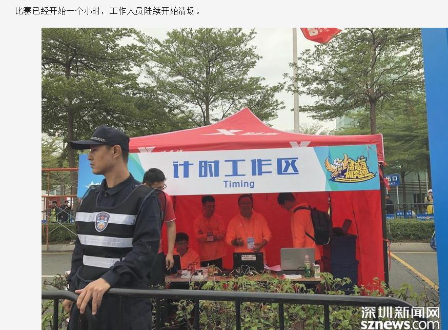終點處有志愿者與啦啦隊支持者合影留念。