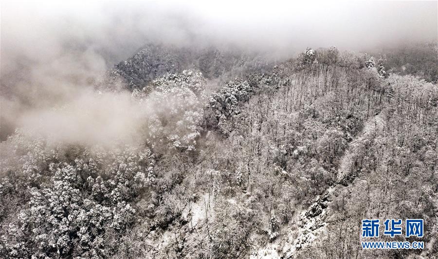 11月5日無人機(jī)拍攝的陜西省漢中市佛坪縣涼風(fēng)埡景區(qū)雪景。 新華社記者陶明攝