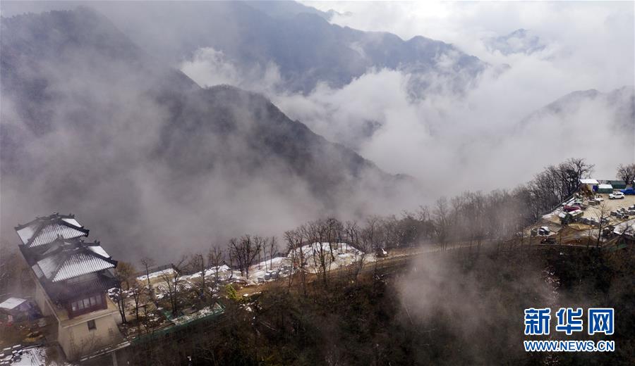 11月17日無人機(jī)拍攝的華山蒼龍嶺。 當(dāng)日凌晨的一場大雪將西岳華山變成白雪皚皚的世界,白雪與蒼翠的華山奇松、靈動的云海交相輝映,如夢如幻;滿山遍野玉樹瓊花,樹枝上通體的霧凇晶瑩剔透,繪就冬日畫境,美不勝收,游人如置身人間仙境。 新華社記者陶明攝