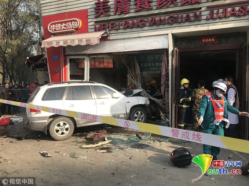 2018年12月14日上午10時左右,在鄭州市中原區(qū)淮河路與工人路交叉口發(fā)生一起交通事故。一輛白色SUV轎車在撞上一輛電動自行車后沖入沿街一包子店,事故造成1人死亡,8人受傷。據鄭州市交巡警二大隊通報,目前,59歲的肇事司機陳某已被警方控制,傷者送醫(yī)救治,事故正在進一步調查。圖為交警在事發(fā)地點處理事故。