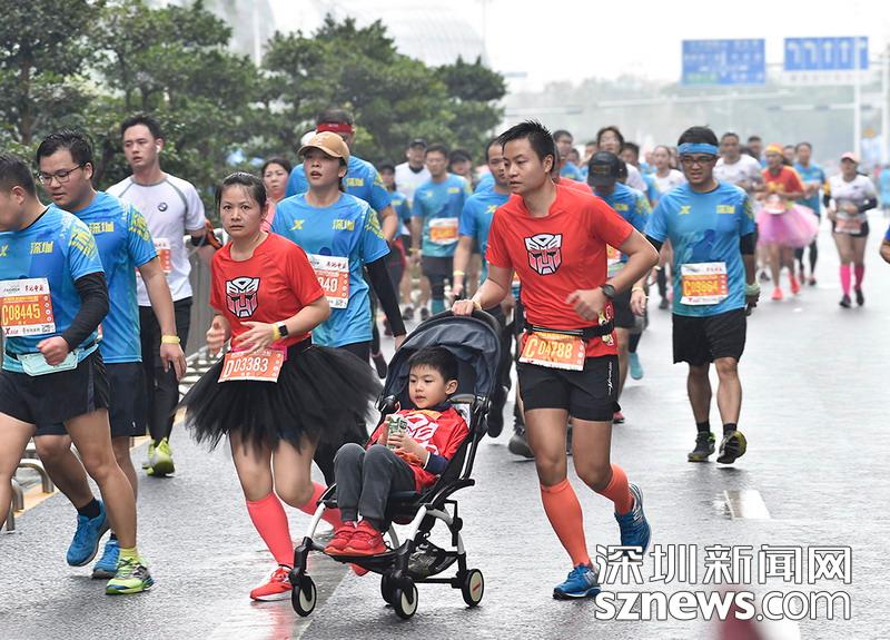 2018年12月16日,深圳國際馬拉松位于后海的折返點(diǎn),一家三口都參與了本次比賽,正向目標(biāo)沖刺。