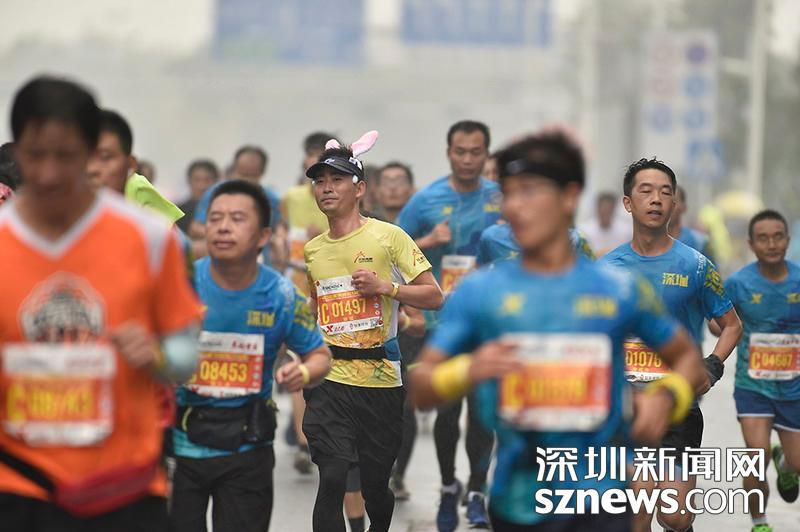 2018年12月16日,深圳國際馬拉松位于后海的折返點(diǎn),一名選手正在向終點(diǎn)沖刺。