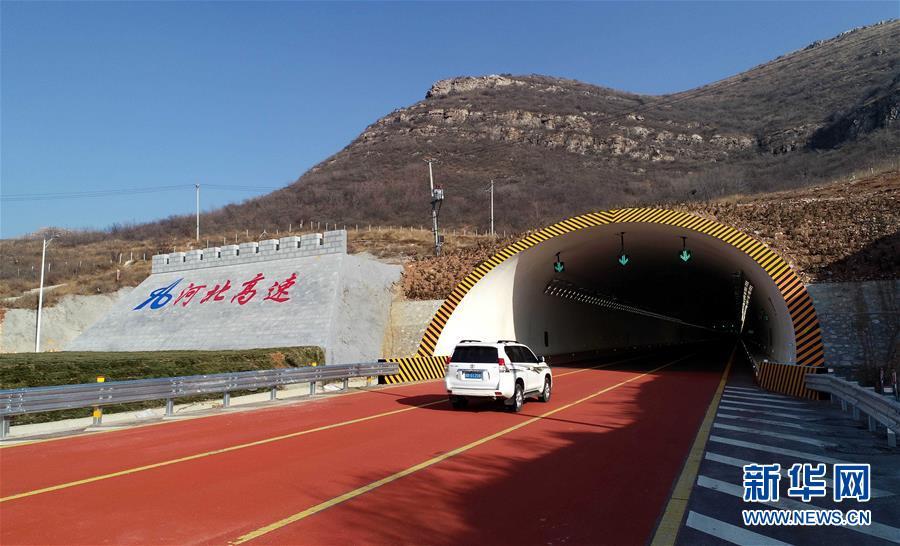 12月16日,一輛汽車行駛在京秦高速公路二期工程河北玉田境內(nèi)的鳳凰頂隧道路段(無(wú)人機(jī)拍攝)。