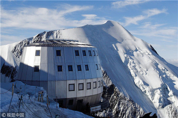 2012年8月6日消息(具體拍攝時(shí)間不詳),法國圣熱爾維,一座坐落在阿爾卑斯山脈上海拔3835米的旅館近日落成,旅館目前處于試運(yùn)行狀態(tài)直到8月底向公眾開放。這座旅館共有120個(gè)床位,達(dá)到了高環(huán)境質(zhì)量標(biāo)準(zhǔn)。