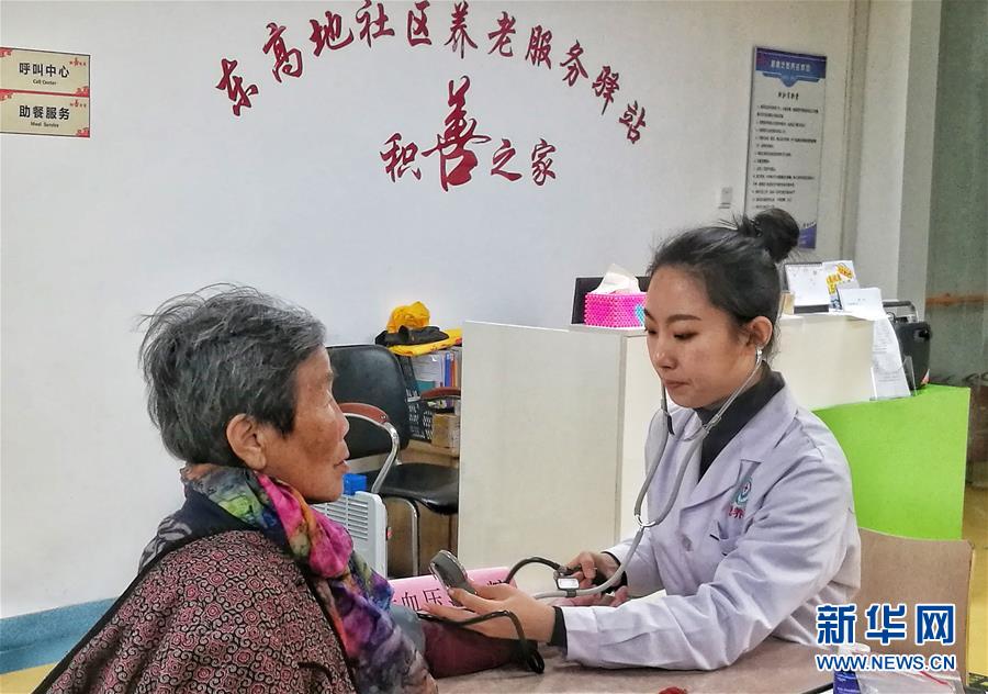 12月18日,豐臺區(qū)東高地街道養(yǎng)老服務(wù)驛站聘請的醫(yī)務(wù)人員為社區(qū)老人進(jìn)行免費(fèi)檢查。 新華社記者 李欣 攝