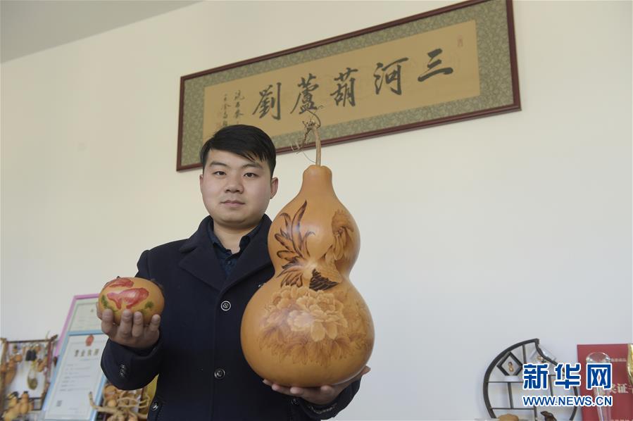2014年,劉征從北京工商大學(xué)畢業(yè)后,曾從事過一段時間旅游產(chǎn)業(yè)方面的工作。2015年他回鄉(xiāng)創(chuàng)業(yè),致力于葫蘆烙畫創(chuàng)作和葫蘆衍生品的開發(fā)。如今,劉征不僅注冊了自己的葫蘆衍生品商標(biāo),還和同學(xué)組建團隊共同創(chuàng)業(yè),業(yè)務(wù)內(nèi)容涵蓋從葫蘆種植、加工到銷售的全流程,著力打造個性化訂制等特色產(chǎn)品。目前,劉征和他的團隊已銷售葫蘆創(chuàng)意產(chǎn)品超過1萬件,客戶超過1000人,部分創(chuàng)意產(chǎn)品還遠銷到海外市場。