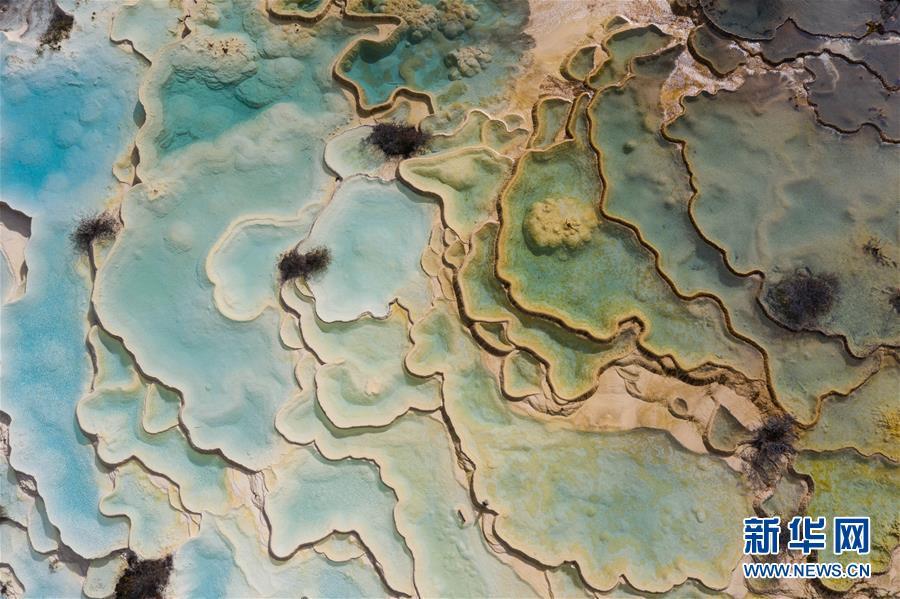 這是2018年10月19日航拍的黃龍溝五彩池一角。 大地之色,俯仰之間;壯美山河,是我的祖國(guó)。2018年,新華社記者操縱無人機(jī)“飛閱”華夏大地,在最美的時(shí)節(jié),定格下她的色彩斑斕。 新華社記者 江宏景 攝