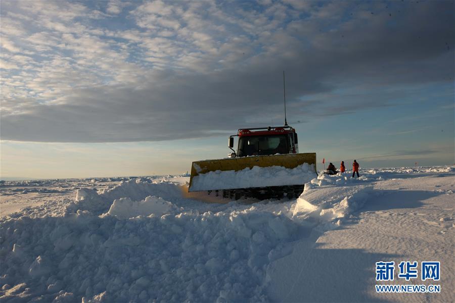 修路小組成員用雪地車裝備的鏟斗推平積雪(12月1日攝)。 搭載中國第35次南極科考隊(duì)的“雪龍”號(hào)極地考察船日前到達(dá)距離中山站44公里處的陸緣冰區(qū),準(zhǔn)備迎來本次南極科考首場攻堅(jiān)戰(zhàn)——物資卸運(yùn)。一支探冰小組隨即展開海冰探路,以期盡快打通從“雪龍”號(hào)到中山站的冰上運(yùn)輸線,盡早啟動(dòng)冰上運(yùn)貨。 新華社記者 劉詩平 攝