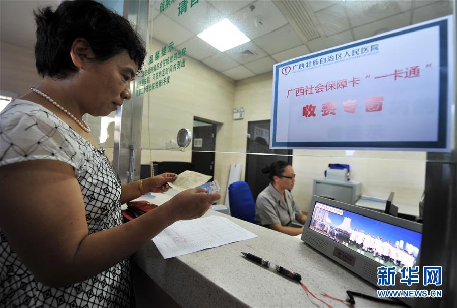 在廣西壯族自治區(qū)人民醫(yī)院,從北海到南寧異地就醫(yī)的鄭曉榮持社會保障卡在結算醫(yī)藥費(2015年6月30日攝)。 歷史進步的背后,必有堅強領導力量的引領。 “堅持黨的領導,全面從嚴治黨,是改革開放取得成功的關鍵和根本。”習近平總書記總結改革開放40年歷史和實踐作出這一重要論斷。 歷史關頭,中國共產黨的關鍵抉擇,改變了當代中國的命運; 宏偉征程,中國共產黨帶領億萬人民在改革開放實踐中,實現歷史性跨越; 面向未來,中國共產黨肩負實現中華民族偉大復興的歷史使命,把改革開放繼續(xù)推向前進。 新華社記者李斌攝
