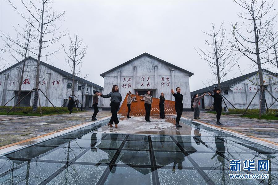 12月20日,村民們在舊糧倉改建的文體中心前排練廣場舞。 新華社記者 徐昱 攝