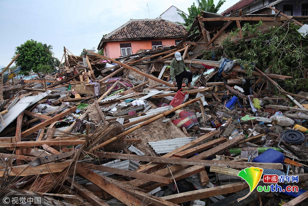 印尼海嘯現(xiàn)場(chǎng)滿目瘡痍!
