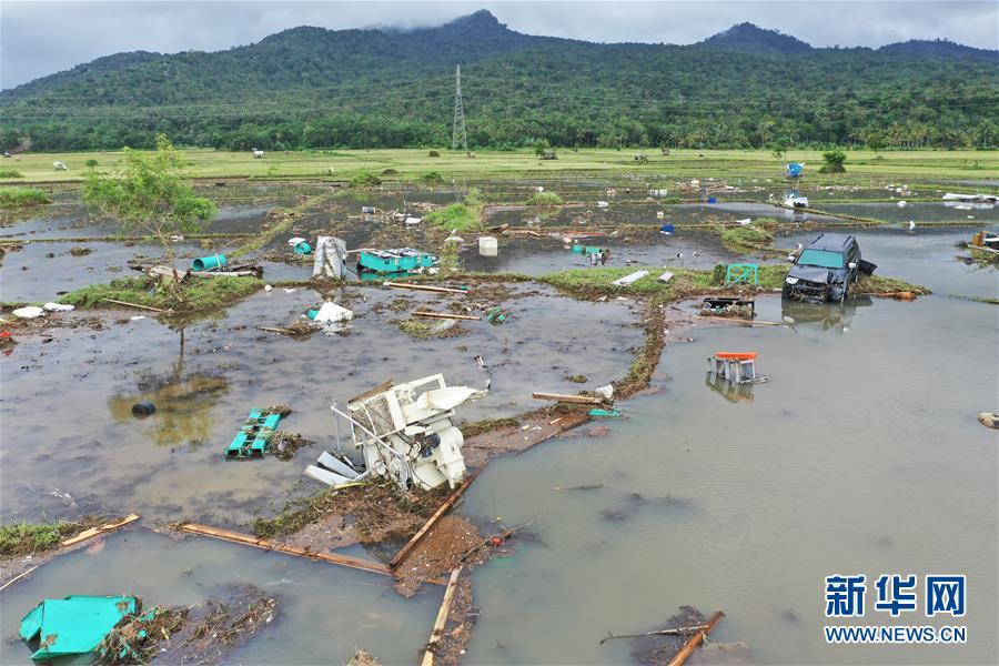 這是12月24日拍攝的印尼萬丹省一處被海嘯損毀的農(nóng)田。 印度尼西亞抗災署發(fā)言人24日說,印尼西部巽他海峽海嘯死亡人數(shù)已經(jīng)上升至373人。 新華社記者 杜宇 攝