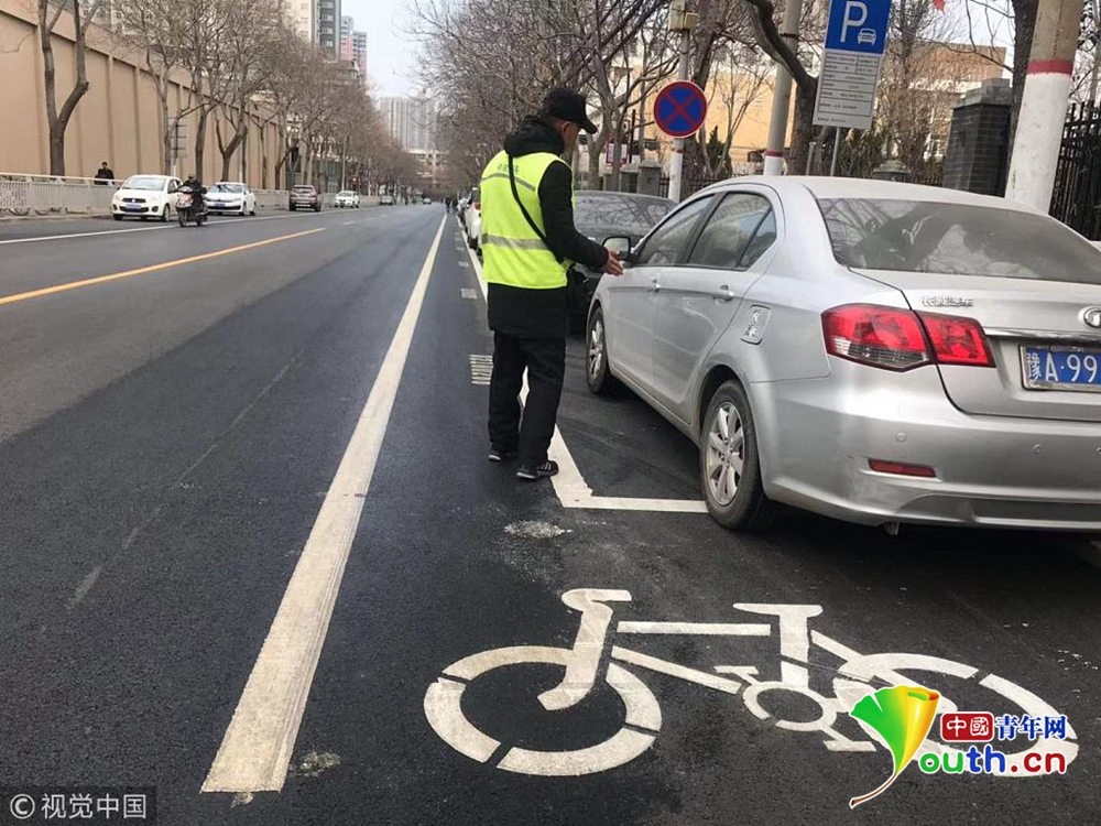12月25日報道,12月24日,鄭州市文化宮路有市民反映,新鋪好的文化宮路非機動車道被剛劃的“停車位”擠得只有0.8米寬。原本2米多寬的非機動車突然有汽車停放后,騎車經(jīng)過的行人只得被逼進快車道通行,很不安全。