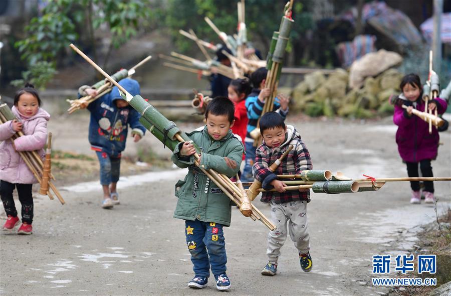 孩子們在搬運剛剛購買的蘆笙(12月24日攝)。