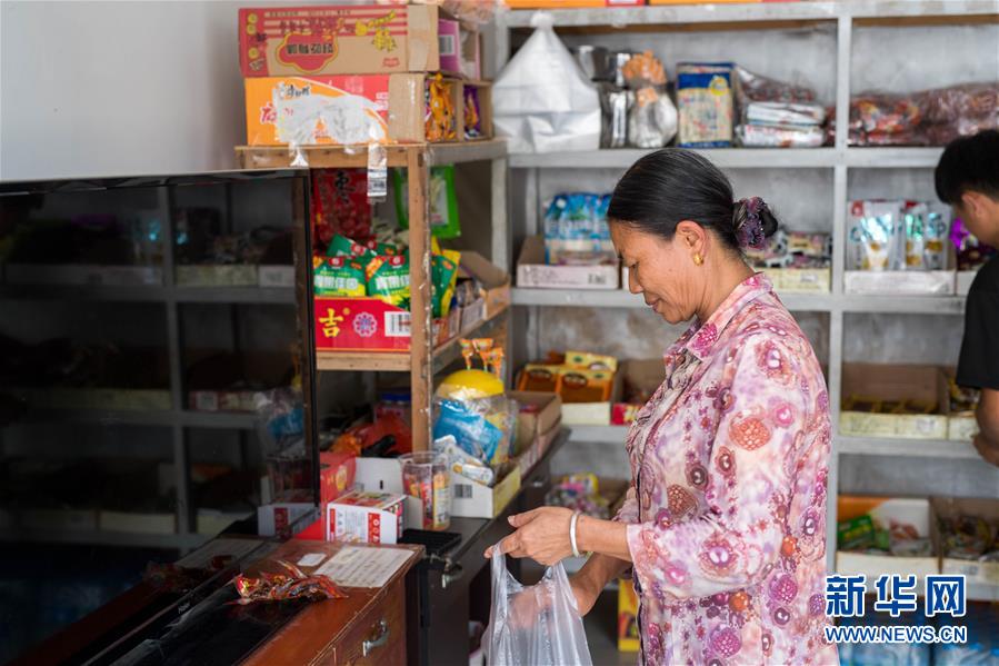 在云南省金平苗族瑤族傣族自治縣者米鄉(xiāng),一名苦聰婦女在自家開的超市里給顧客裝食品(11月14日攝)。 新華社記者 胡超 攝