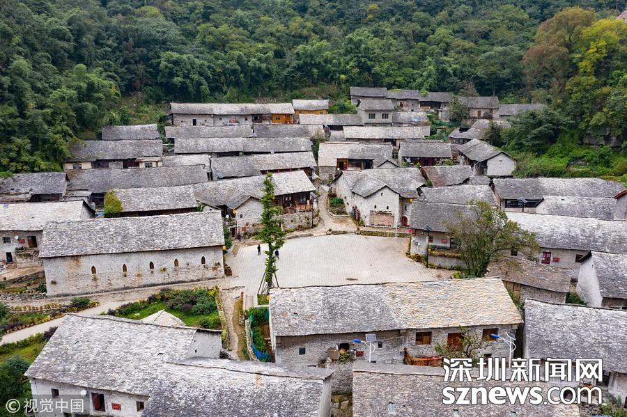 深圳新聞網(wǎng)訊 2018年9月27日,貴州安順,航拍坐落在群山中的鎮(zhèn)寧布依族苗族自治縣高蕩村。鎮(zhèn)寧高蕩村民居為石木結構干欄式石板房,建造時間五、六十年至數(shù)百年不等,建筑保存基本完好。