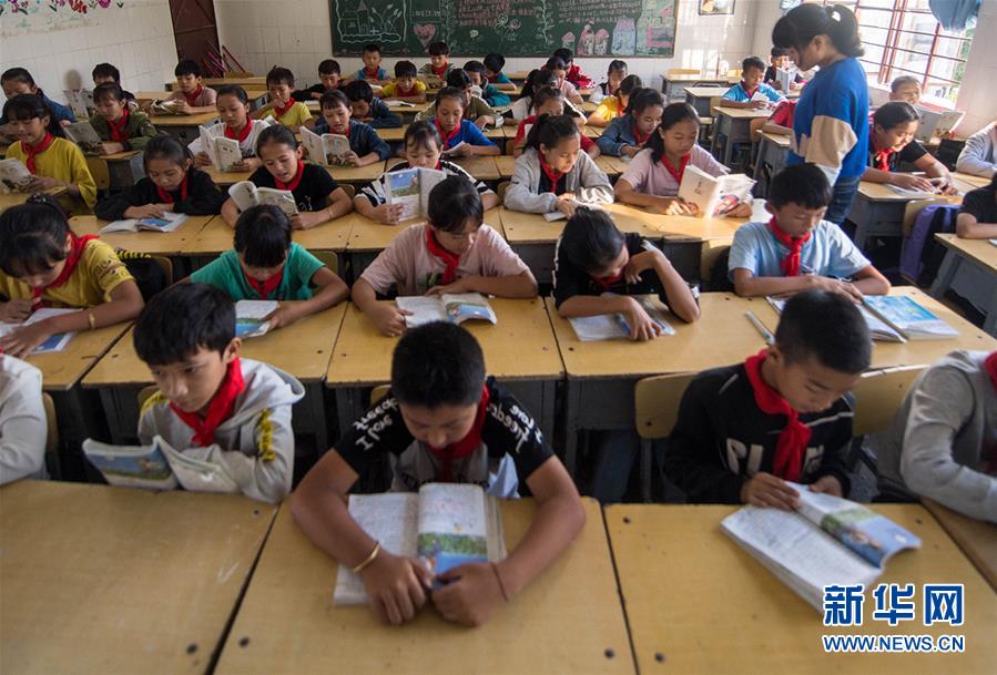 在云南省金平苗族瑤族傣族自治縣者米鄉(xiāng)中心小學(xué),孩子們在教室里上課。云南省逐步在人口較少民族和“直過民族”聚居區(qū)實行從學(xué)前教育到高中階段的14年免費教育(11月13日攝)。新華社記者 胡超 攝