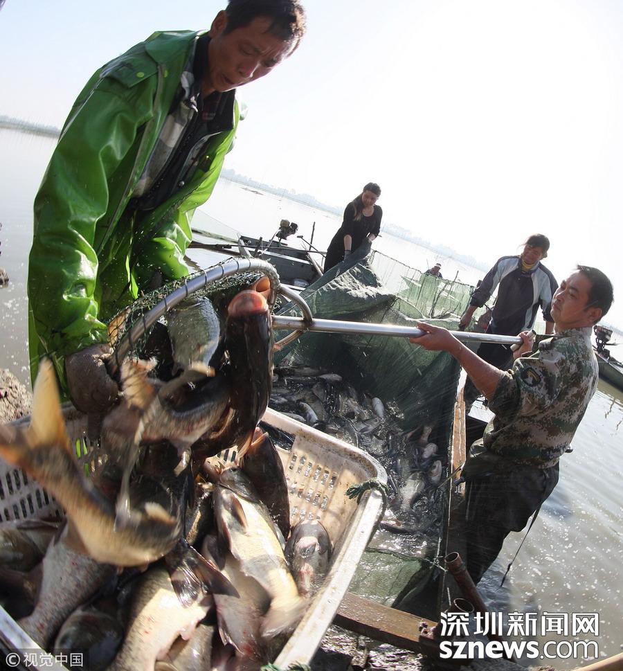 江蘇揚(yáng)州:天氣轉(zhuǎn)涼 捕魚上市正當(dāng)時