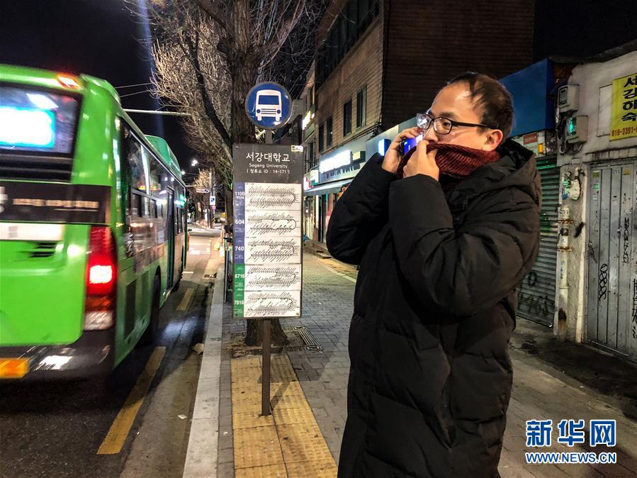 12月28日,一名行人在韓國首爾西江大學附近的一個公交站打電話。據韓國氣象部門28日消息,全國各地當天迎來強寒潮,首爾地區(qū)體感溫度達零下19.3攝氏度,中部地區(qū)和南部地區(qū)已發(fā)布低溫預警。新華社記者 王婧嬙 攝