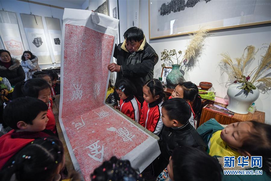 12月29日,孩子們?cè)谯祬擎?zhèn)的老街上觀看拓印技藝展示。 當(dāng)日,“中國竹扇之鄉(xiāng)”——浙江省安吉縣鄣吳鎮(zhèn)舉辦傳統(tǒng)文化迎新年活動(dòng)。舉辦包括扇文化博覽會(huì)、扇面藝術(shù)展、制扇工藝展示及金石、拓印文化展示等活動(dòng),弘揚(yáng)中華優(yōu)秀傳統(tǒng)文化。 自上世紀(jì)七十年代以來,鄣吳鎮(zhèn)開始發(fā)展制扇產(chǎn)業(yè),現(xiàn)在該鎮(zhèn)有各類制扇企業(yè)80余家,制扇行業(yè)從業(yè)人員2000多人,年產(chǎn)值達(dá)2億多元。 新華社記者 徐昱攝