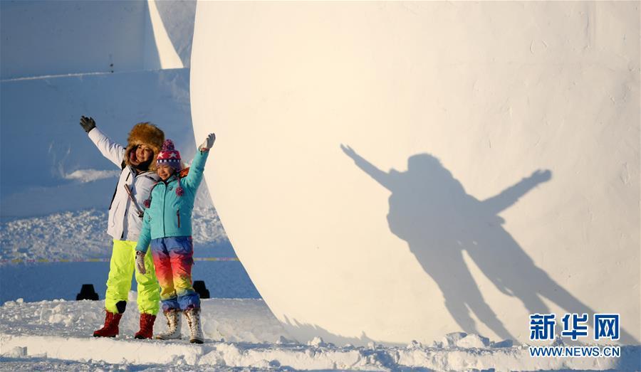 12月29日,在太陽島雪博會園區(qū),游客在雪雕作品前留影。 當(dāng)日,第31屆哈爾濱太陽島國際雪雕藝術(shù)博覽會正式開園。本屆太陽島雪博會以“歡樂雪博會·夢幻雪域游”為主題,占地90萬平方米,分為五大景區(qū)。 新華社記者 王建威 攝