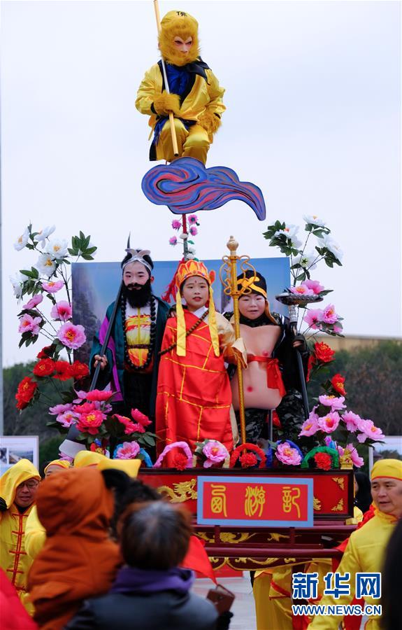 1月1日在展演活動上拍攝的“抬閣”表演。2019年元旦,浙江省桐鄉(xiāng)市濮院鎮(zhèn)舉辦新年“非遺文化藝術(shù)節(jié)”活動,濮院鎮(zhèn)下屬多個鄉(xiāng)村的傳統(tǒng)美食制作、手工藝品、非遺文化表演等鄉(xiāng)村特色非遺項目在濮院鎮(zhèn)中心廣場進行集中展示展演。新華社記者 徐昱 攝