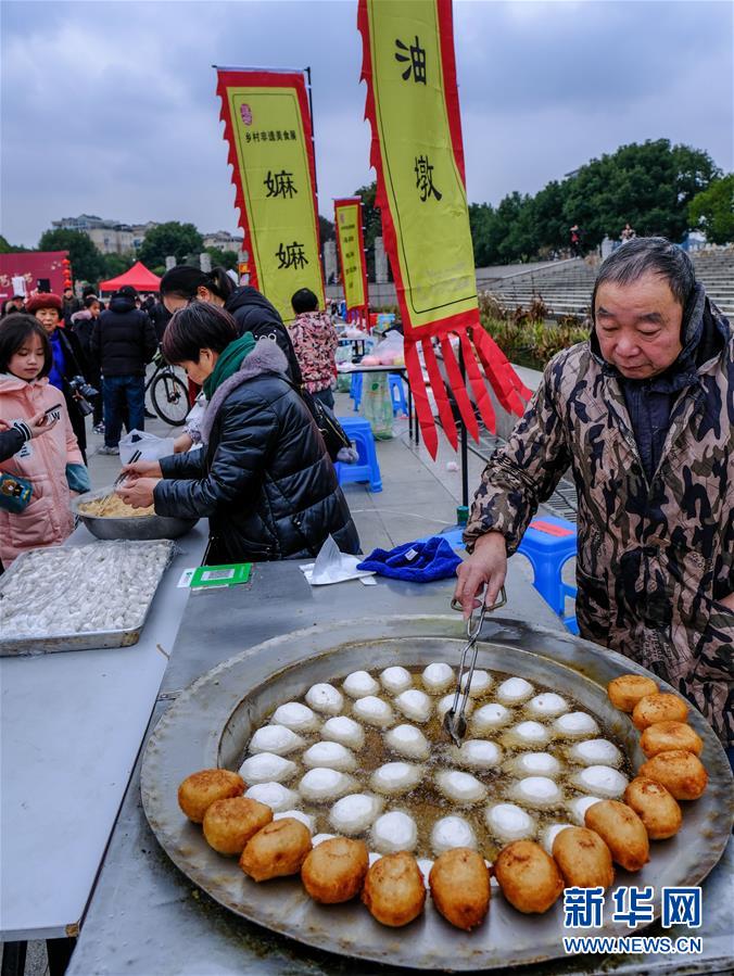 2019年1月1日,居民在展演活動上制作傳統(tǒng)美食“油墩”。2019年元旦,浙江省桐鄉(xiāng)市濮院鎮(zhèn)舉辦新年“非遺文化藝術(shù)節(jié)”活動,濮院鎮(zhèn)下屬多個鄉(xiāng)村的傳統(tǒng)美食制作、手工藝品、非遺文化表演等鄉(xiāng)村特色非遺項目在濮院鎮(zhèn)中心廣場進行集中展示展演。新華社記者 徐昱 攝