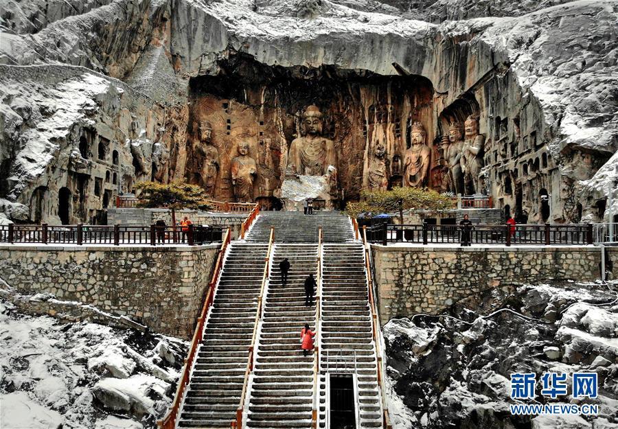 1月9日無人機拍攝的洛陽龍門石窟奉先寺。 新華社記者李安攝