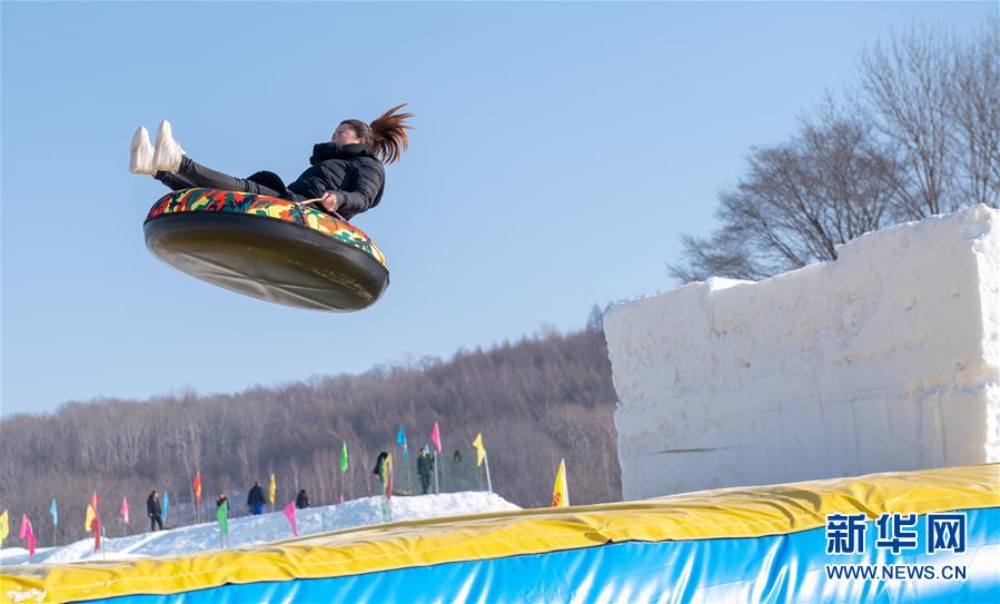1月10日,在舒蘭市二合屯,游客體驗(yàn)雪圈游戲項(xiàng)目。 新華社記者張楠攝