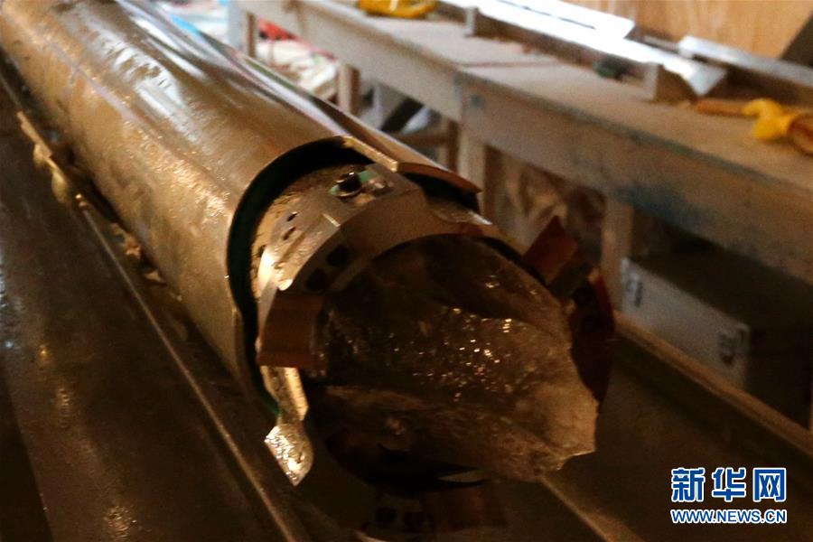 這是鉆取的2.8米長冰芯(1月12日攝)。 新華社記者 劉詩平 攝