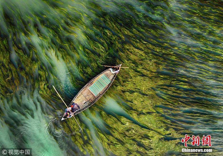 中國(guó)新聞網(wǎng)1月14日訊(具體拍攝時(shí)間不詳),孟加拉國(guó)烏拉帕拉,漁船在水流和藻類(lèi)的映襯下前行,畫(huà)面看起來(lái)就像水彩畫(huà)一般。圖片來(lái)源:視覺(jué)中國(guó)
