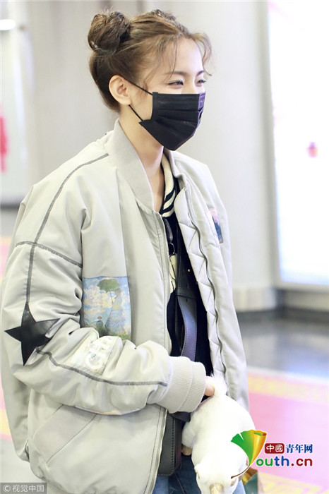 2019年1月14日,北京,楊超越現(xiàn)身機(jī)場(chǎng)。她扎哪吒頭活力十足,甩玩偶淘氣回眸,穿破洞褲露美腿,披面包服似自帶鼓風(fēng)機(jī)。