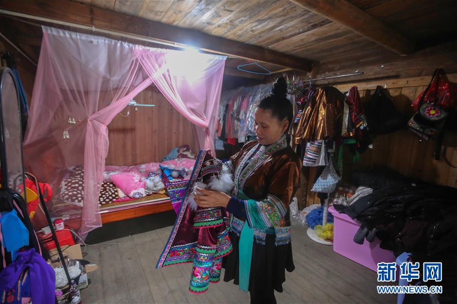 貧困戶住進“復(fù)原”的房子,保持了熟悉的生活生產(chǎn)習(xí)慣,生活質(zhì)量大幅提高,并在參與景區(qū)演出、田園管理等工作中獲得穩(wěn)定收入。夢嗚苗寨計劃一共搬入100戶貧困戶,目前已完成12戶42名建檔立卡貧困人員的搬遷工作。 新華社記者 陳君清 攝