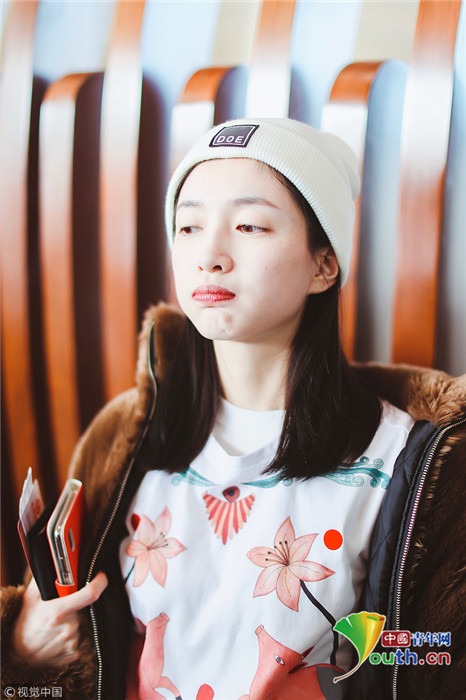 2019年1月21日,北京,江疏影現(xiàn)身機場。她穿花衣氣質(zhì)清新,對鏡噘紅唇粉嫩可人,還不拘小節(jié)當眾提褲子,女神范兒一秒破功。