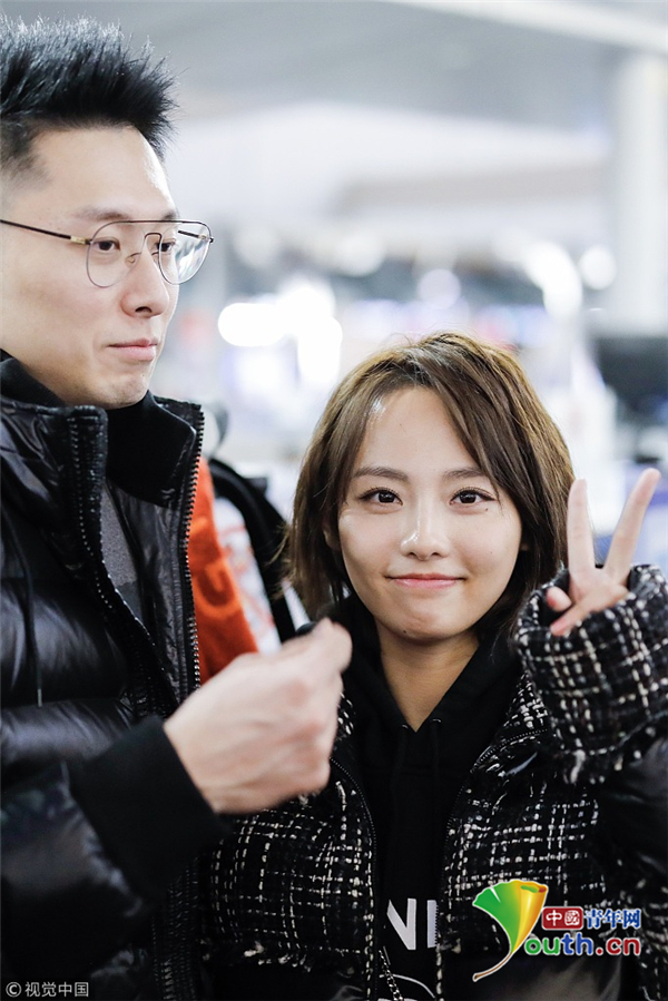 2月20日,上海,張嘉倪、買超深夜現(xiàn)身機(jī)場,啟程前往2019秋冬米蘭時(shí)裝周。張嘉倪依偎在老公懷里十分小女生,兩人對鏡頭比心狂撒狗糧,與粉絲親切合影簽名,十分接地氣。